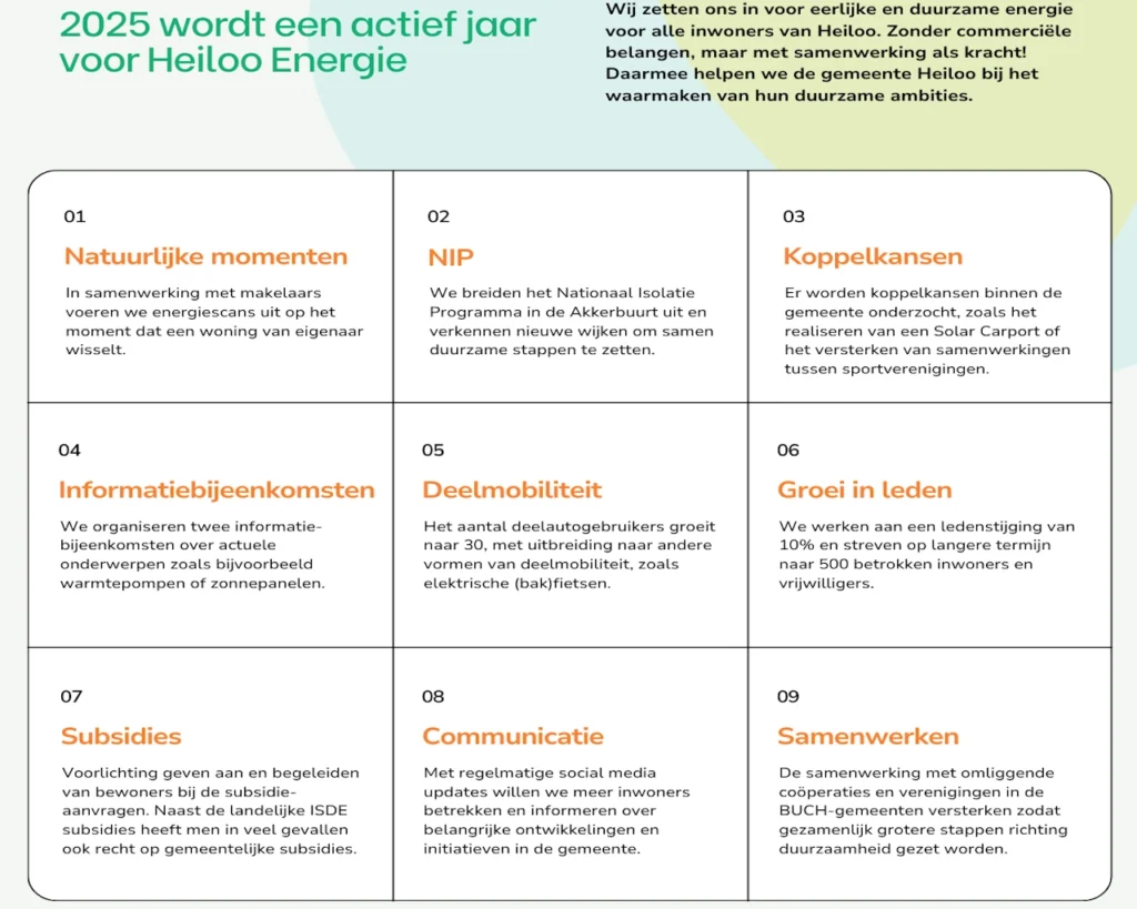 Naast onze samenwerking met de gemeente Heiloo, zoeken we ook actief de samenwerking met andere energiecoöperaties in de BUCH-gemeenten. Samen kunnen we meer bereiken en grotere duurzame stappen zetten.